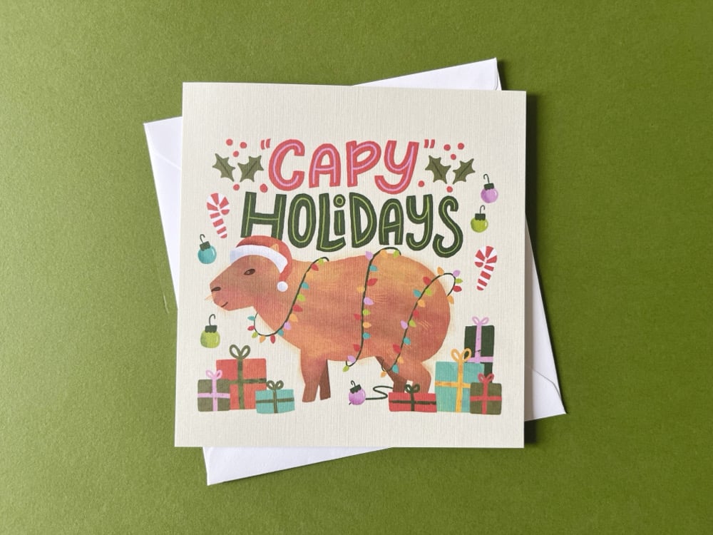 Capy Holidays Capybara with Santa Hat Christmas Greeting Card