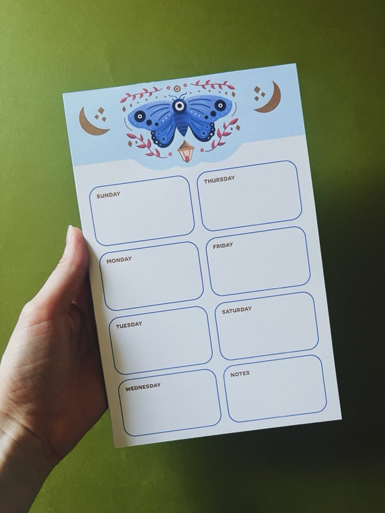 Weekly Planner Half Sheet Notepad 52 Weeks | Lunar Moth or Barred Owl